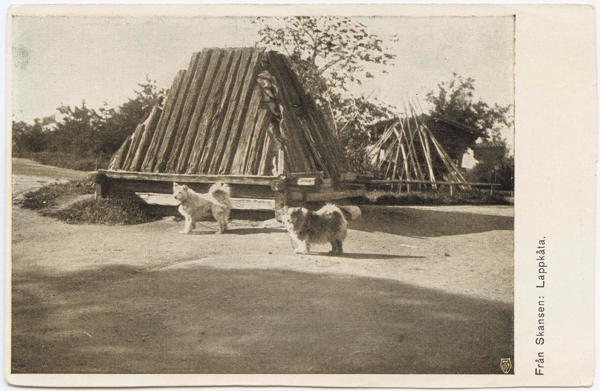 Titel: Vykort med motiv från Skansen. "Lappkåta"