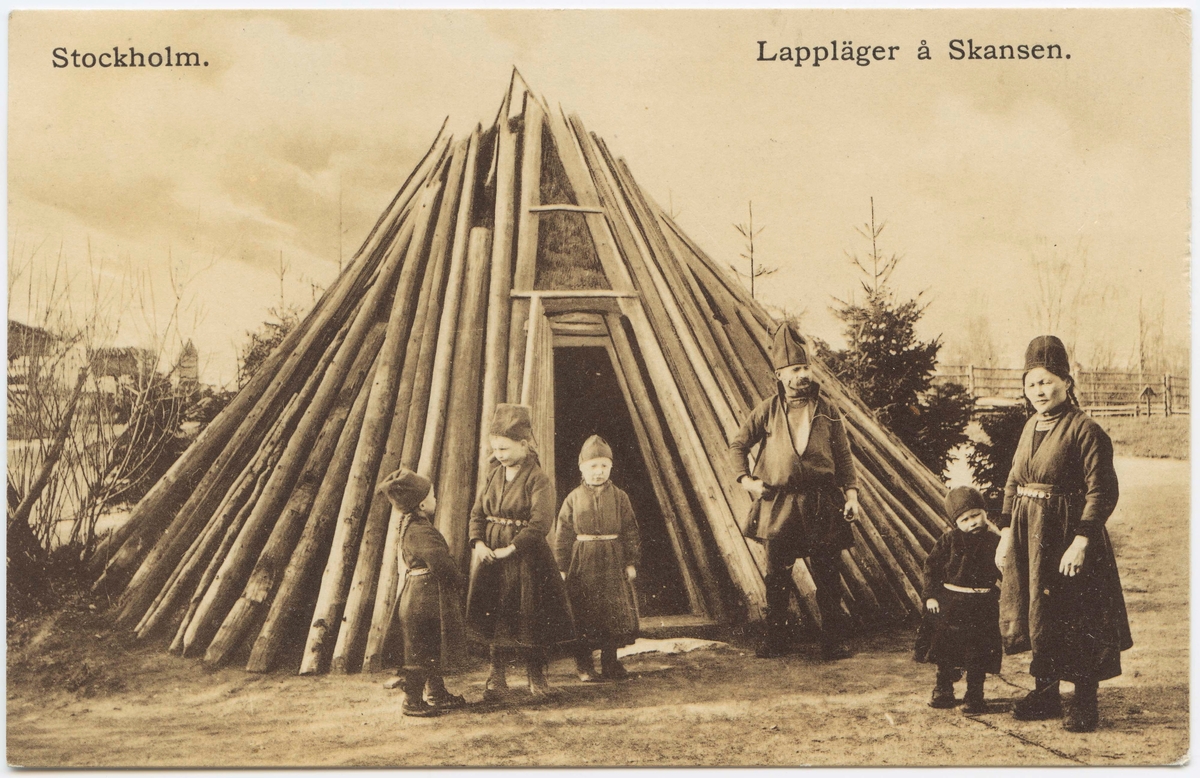 Titel: Vykort med motiv från Skansen. "Lappläger å Skansen"