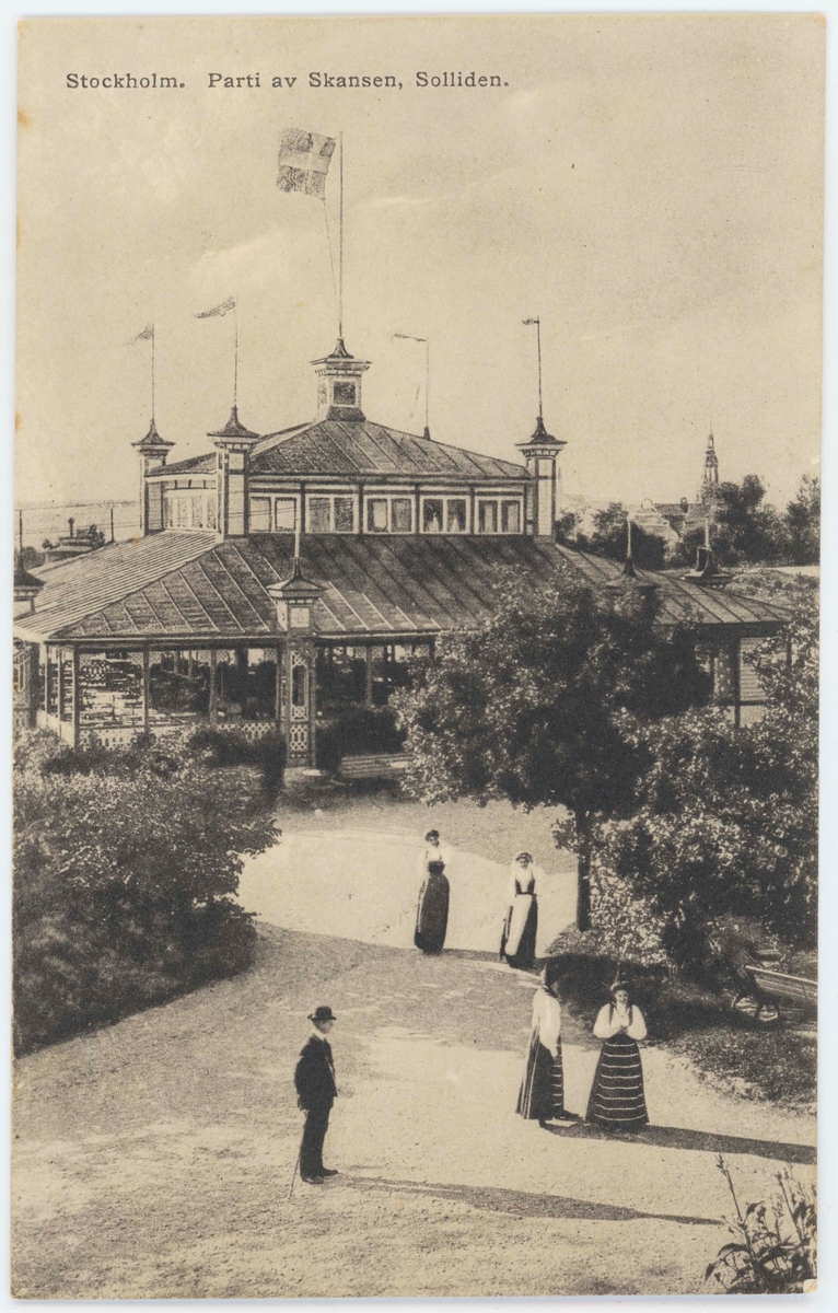 Vykort med motiv från Skansen. "Parti av Skansen, Solliden".