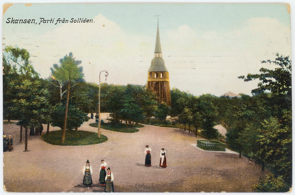 Titel: Vykort med motiv från Skansen. "Parti från Solliden".