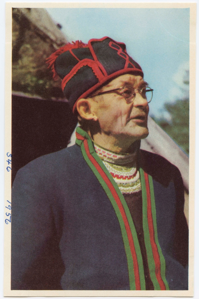Titel: Vykort med motiv från Skansen. Samen Torkel Larsson från Mittådalen.