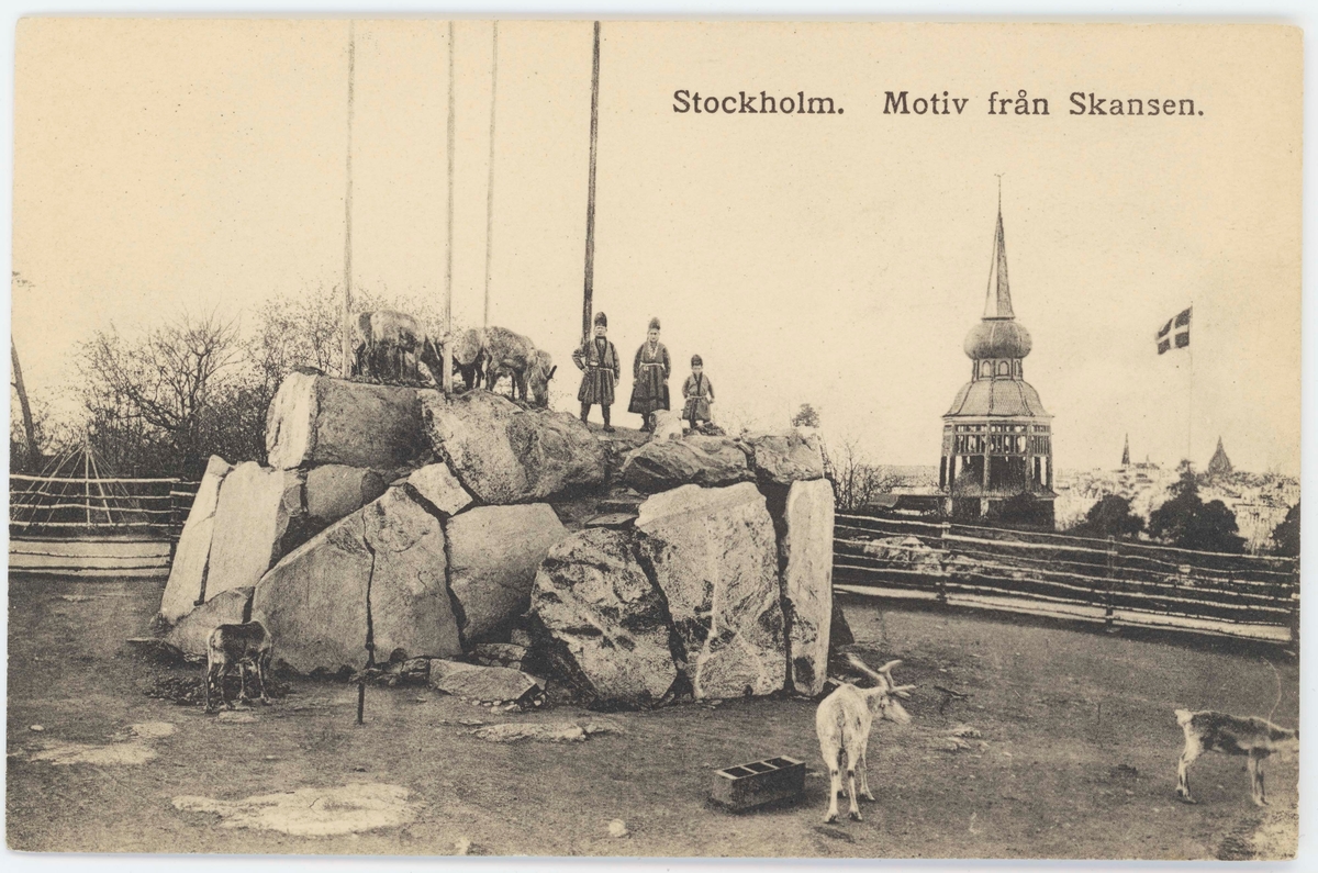 Titel: Vykort med motiv från Skansen. Renberget på Skansen. I bakgrunden Håsjöstapeln.
