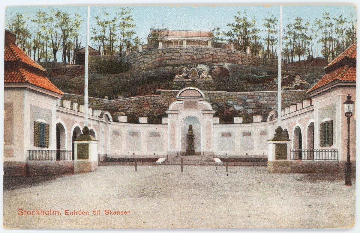 Titel: Vykort med motiv från Skansen. "Entréen till Skansen" Hazeliusporten.