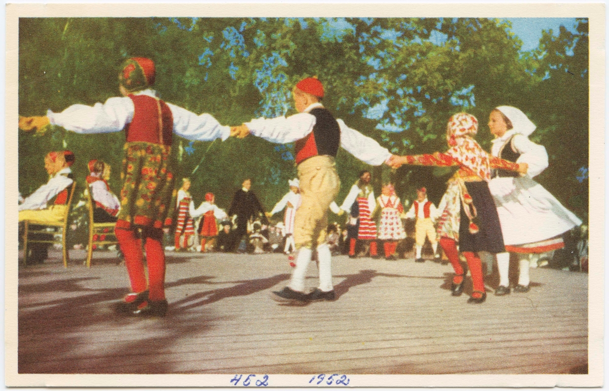Titel: Vykort med motiv från Skansen. "Ringleksbarn".