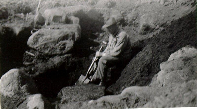 Från utgrävning av Gällshögens gravfält. Utgrävning våren 1935.