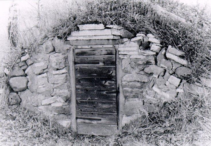 Matkällare utgrävd i en slänt till "backe" med kalkstensvalv och gavlar av kalksten. Källaren var täckt med ett jordlager och hade golv av jord. Det var ytter- och innandörr, vilken gjorde den frostsäker. Men vid kalla vintrar måste innandörren isoleras med jutesäckar eller halm. Invändigt var utrymmet delat med en ca en meter hög brädvägg och ett par hyllor utgjorde inredningen. I en sådan källare fick två familjer dela för att förvara sina rotfrukter. Sommartid var den det enda stället, där mjölk och smör kunde förvaras. Så berättar Gunnar Hjerp, Trinnöjegat. 5, Falköping.