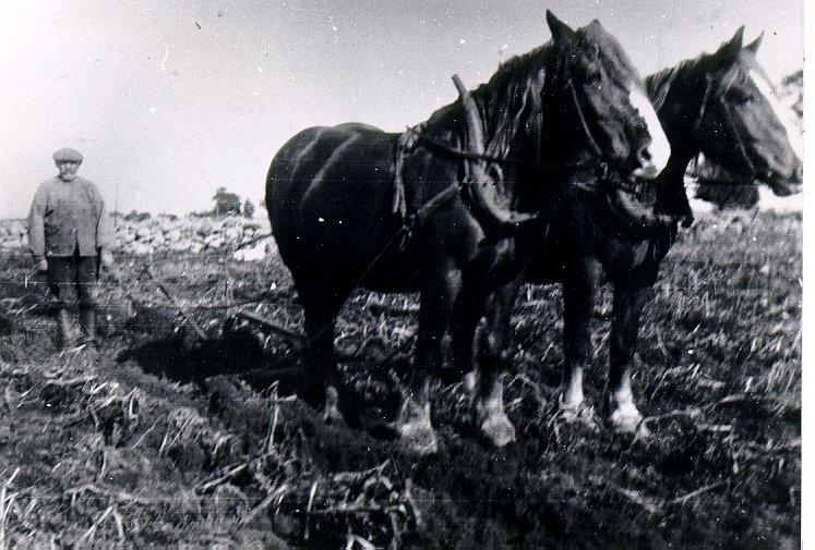Johan Kullander vid potatisupptagning på Makeflaken i Torbjörntorp 1925. Makeflaken låg ca 2 km från Ljusås.