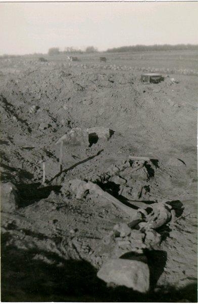 Från utgrävning av Gällshögens gravfält. Våren 1935. Skelettet framgrävt. Stenen med fötterna närmast.
