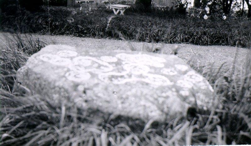 Backor. Offersten, hittad i en stenmur av lantbrukare Roh. Andersson (Götlinds far). Stenen torde vara en av de egendomligaste i bygden, den har slipad kant. Skålgroparna ligger i grupper med förbindelseränna 2, 3, 4, 5.