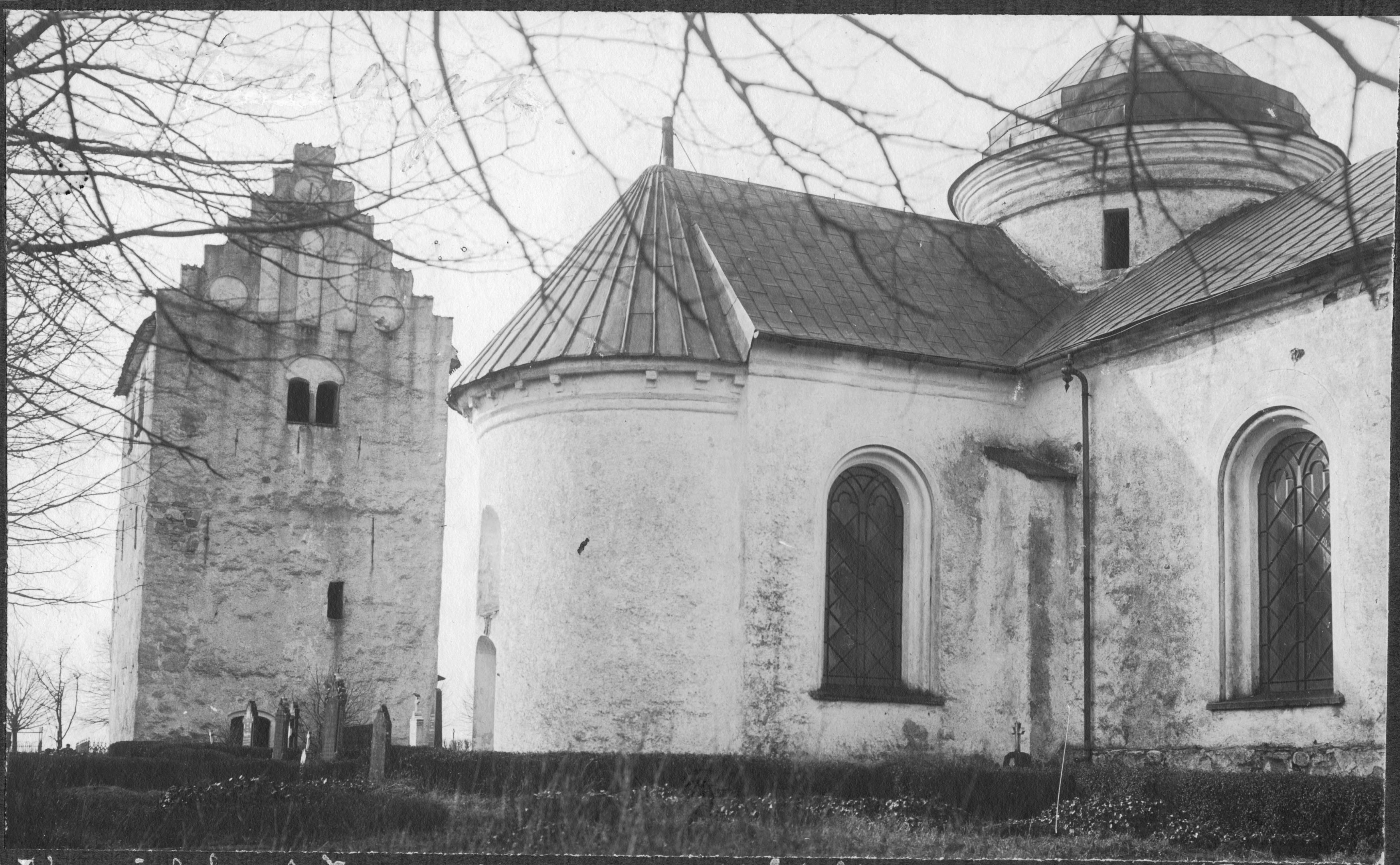 Kyrkan från nordöst med kastalen i bakgrunden.