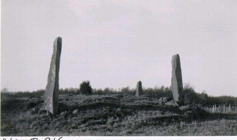Järnåldersgravhög med resta stenar (4 st. därav en fallen) vid Ästorp i Göteve. Säkerligen Falbygdens högsta resta stenar.