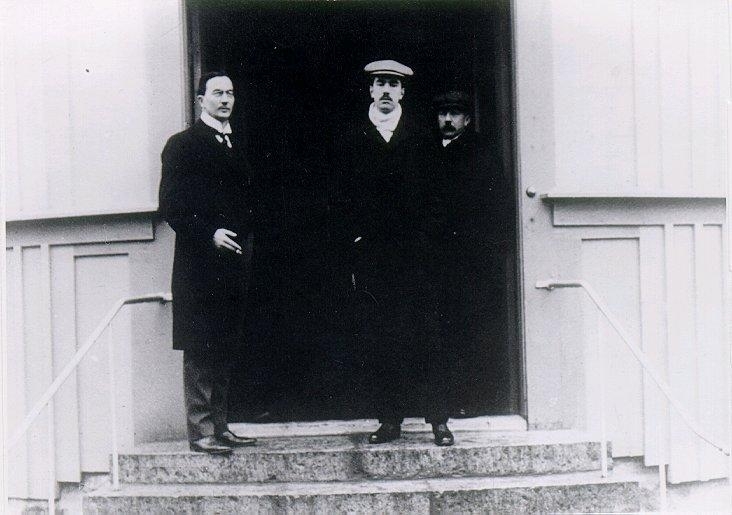 Vintersanatoriet. Med. dokt. Frithiof Alfred Odenius och kronprins Gustav Adolf på Sanatoriets trappa.