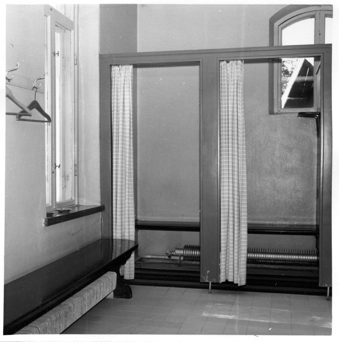 Interiör från omklädningshytt för bastu, Varmbadhus.