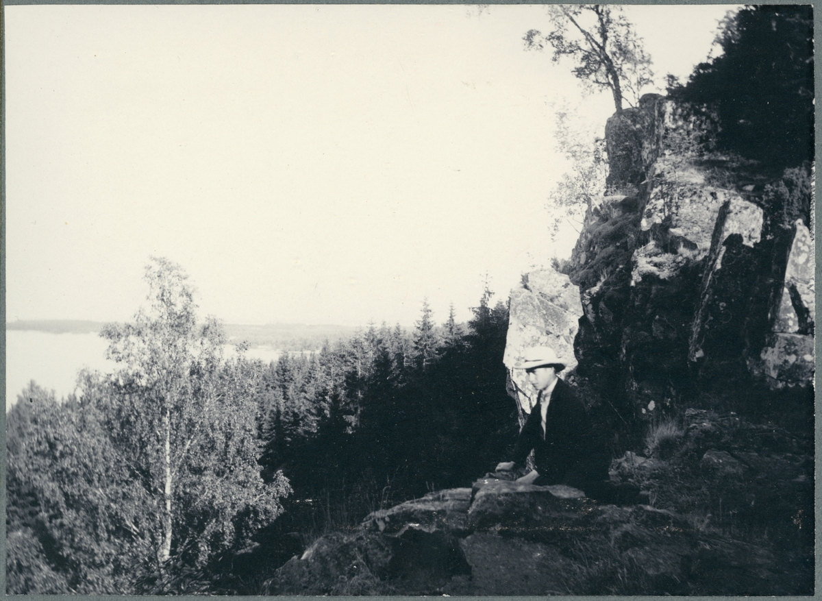 Halleberg. Utsikt mot sydost från avsatsen vid Svallkleven
