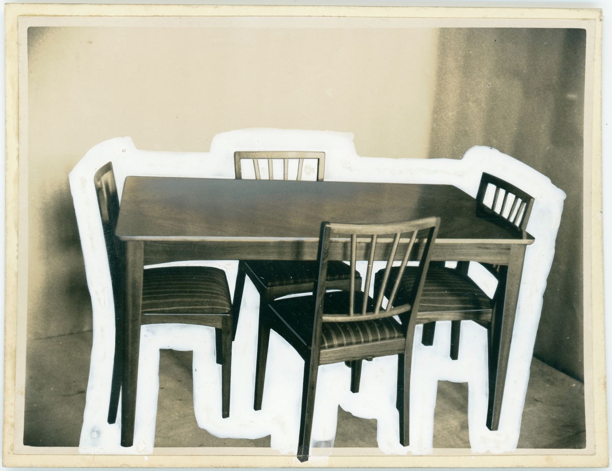Vänersborg. Elfsborgs läns Dövstumskola, senare Vänerskolan. Gesällprov, matbord samt stolar