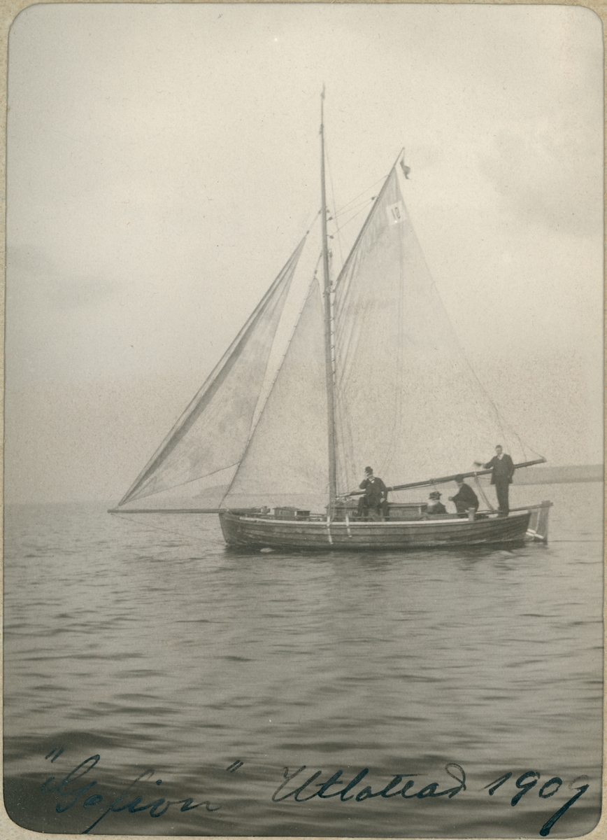 Vänersborg. Segelbåt som lottades ut av Vänersborgs segelsällskap 1909