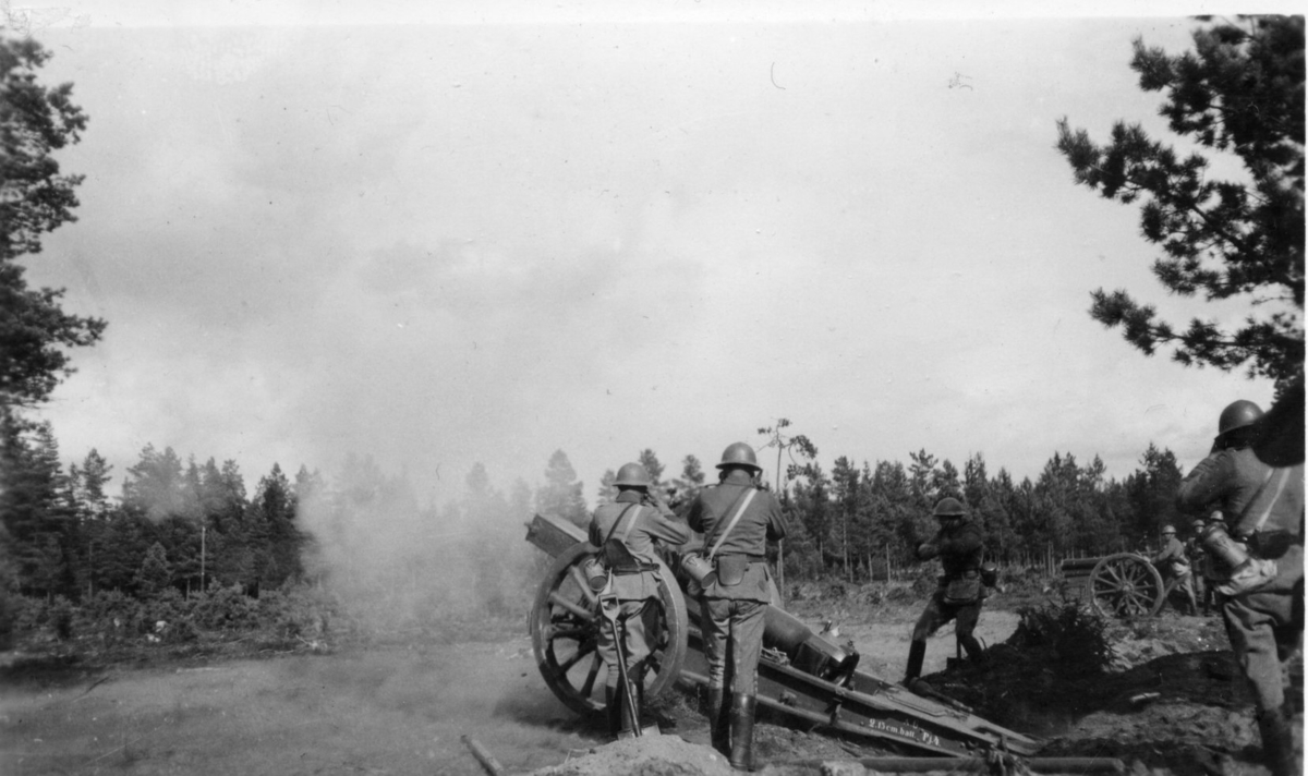 Haubits m/1906. 15 cm, positions. Eldgivning.