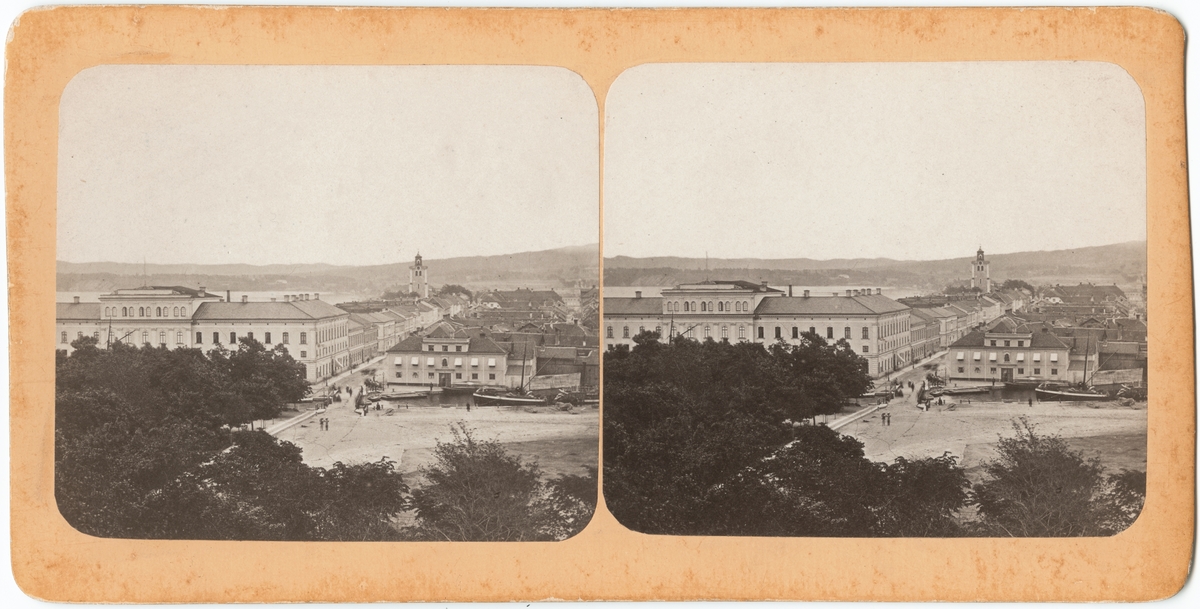 Bild tagen från Allmänna Läroverket i Skolparken över östra delen av Jönköping. Till vänster Stora hotellet och i bakgrunden tornet av Kristine kyrka.