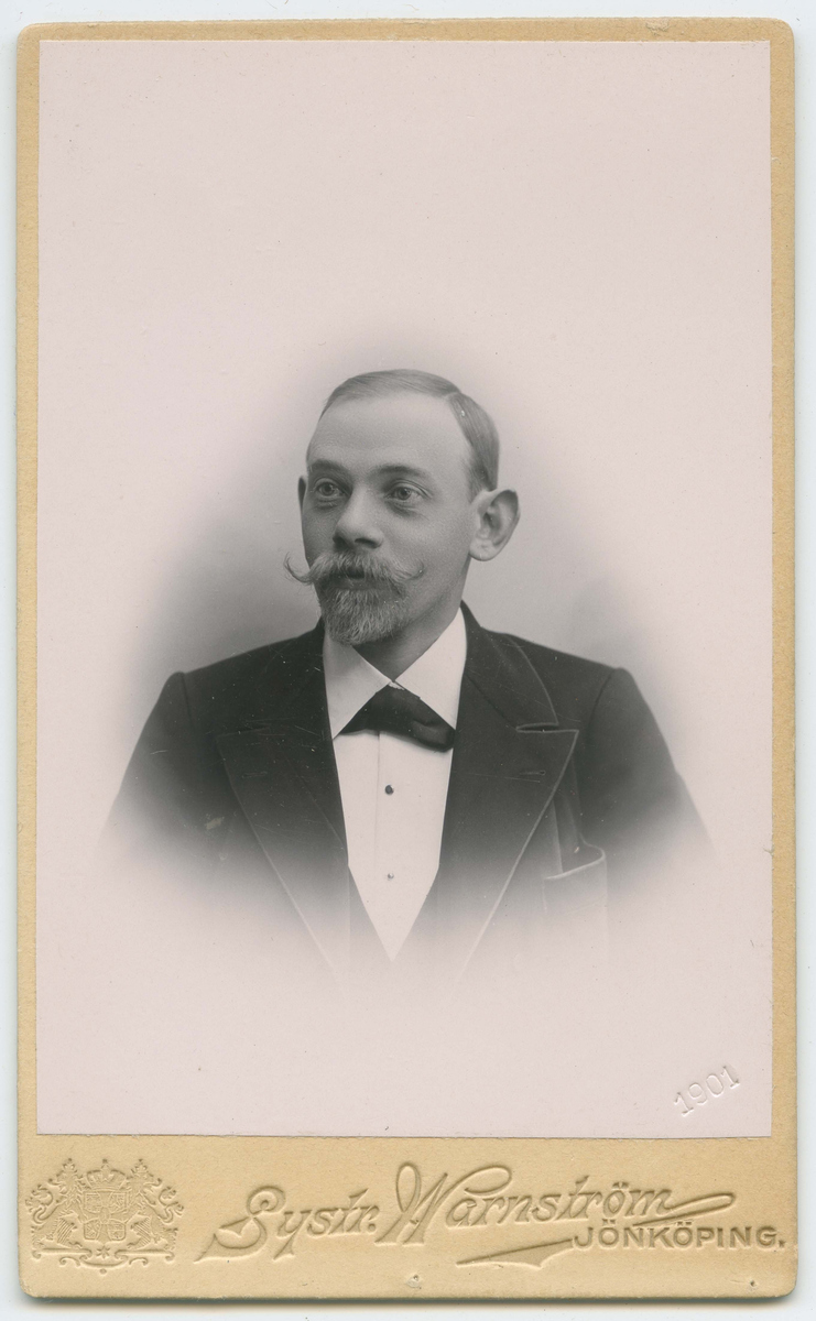 Porträtt på Stephen Nordström. Född 4 december år 1869. Rentierbokhållare ägde huset på Barnarpsgatan 27 i Jönköping.