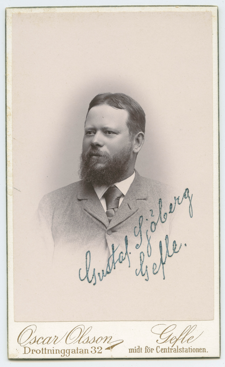 Porträtt på Gustaf Sjöberg. Innehade manufaktur och sybehörsaffär på Östra storgatan 10.