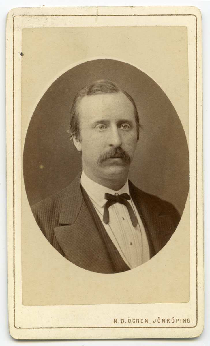 Porträtt på Lektor C.O von Porat. "Calle Pö" Sångare, talare och god stilist. En tidningsredaktör för Jönköpings Dagblad och senare för Jönköpings Tidning.