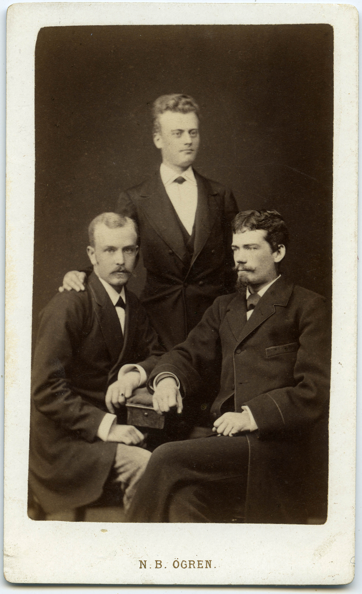 Porträtt på från vänster Oscar Svensson, kassör hos Krönleins bryggeri. August Mattson gamla Tändsticksfabriken, Herman Engström.