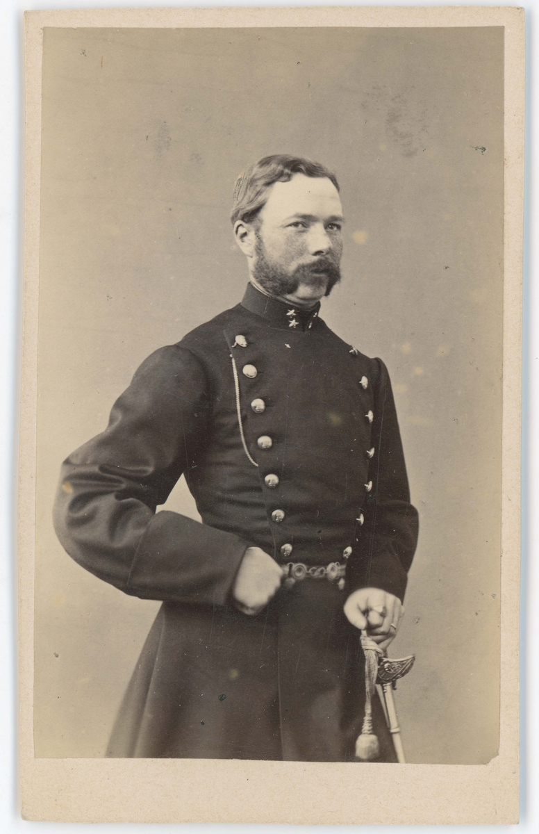 Porträtt på Karl Otto von Gedda, Friherre , Kommissionslantmätare,Överstelöjtnant Jönköpings Regemente I 12. Född 1 november år 1836 i Grans socken i Stockholms län, död 18 januari år 1925. Kyrkobokförd i Jönköping.