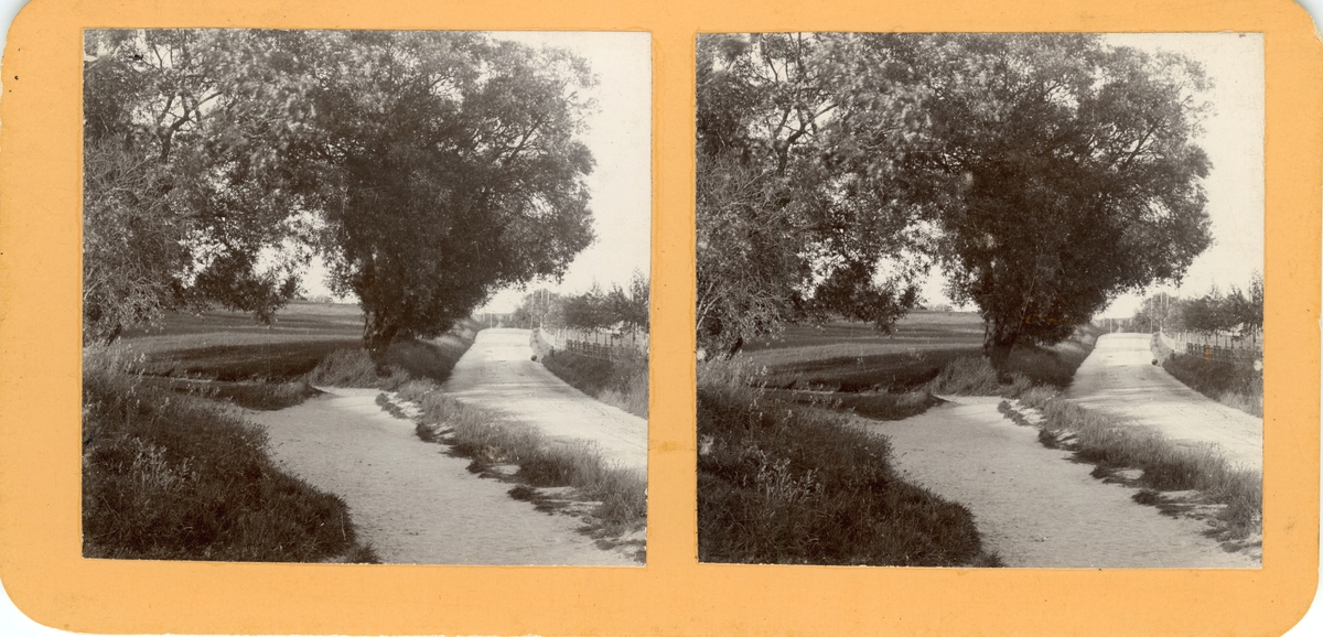 Landsvägen från Dunkehalla ner mot Jönköping. De stora pilträden togs ner år 1900 för att kunna anlägga trottoar på norra sidan om vägen.