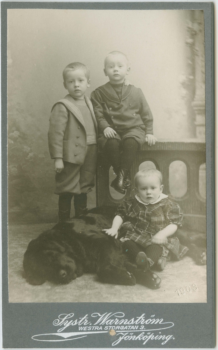 Porträtt på Axel Carléns familj år 1903. Folke, Allan och Berndt.