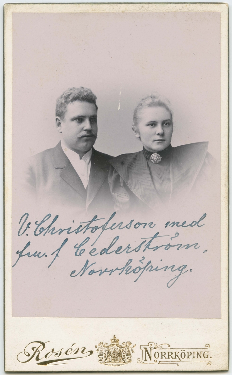 Porträtt på V. Christoffersson, Norrköping med sin fru född Cederström.