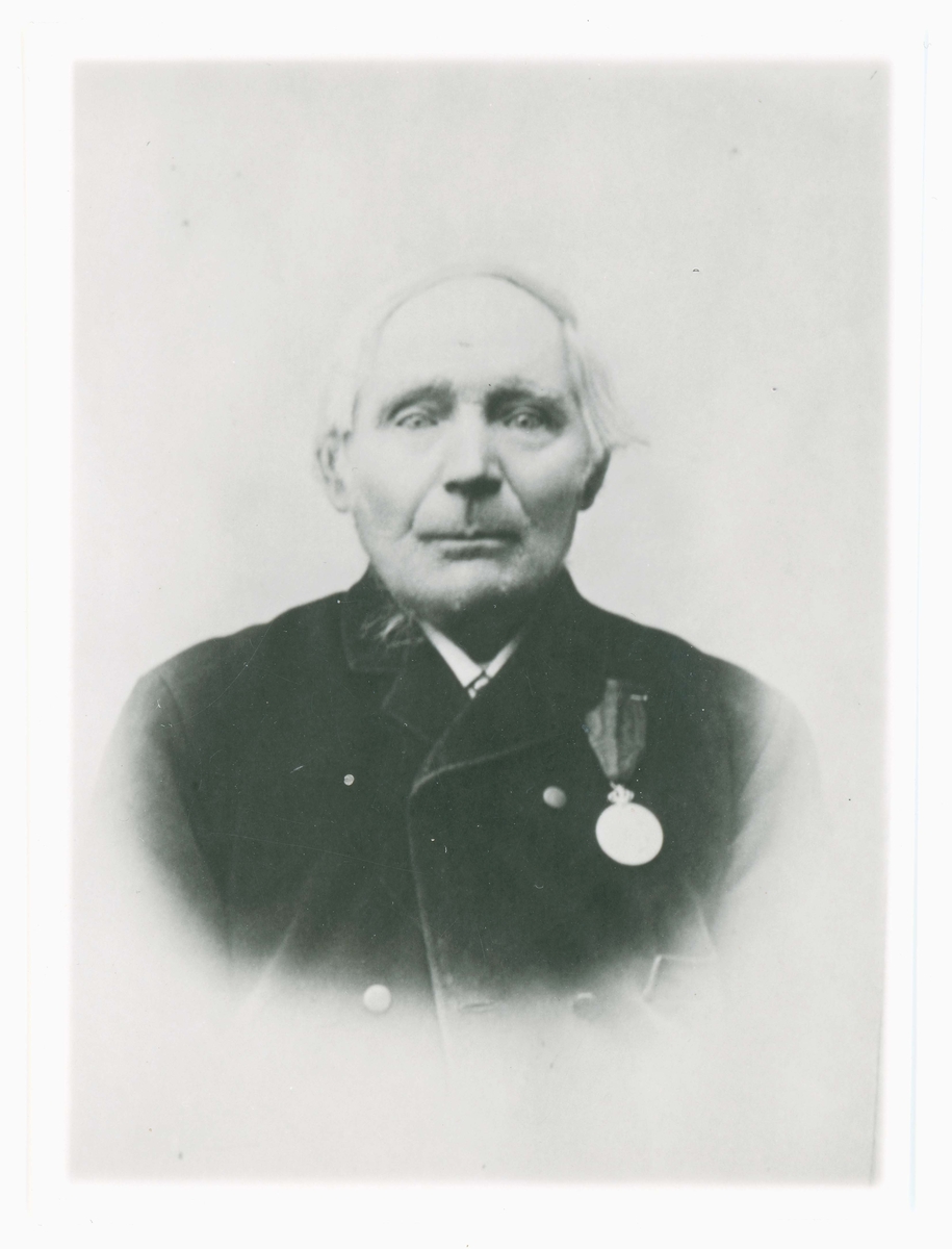 Porträtt på klockaren Nils Johannesson i Lid. Vid 85 års ålder år 1885.