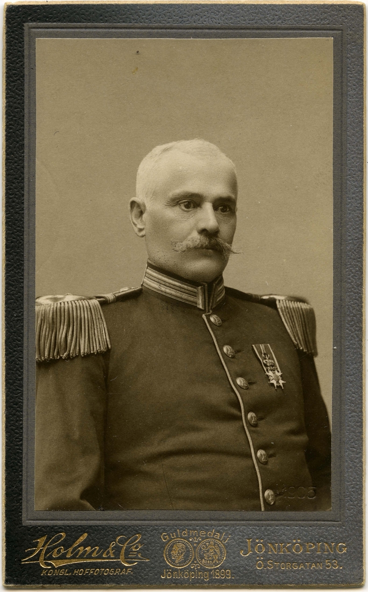 Porträtt på Johan Edward Clemens Hebbe, Jönköpings regemente I12, Född år 1850 och död år 1928.