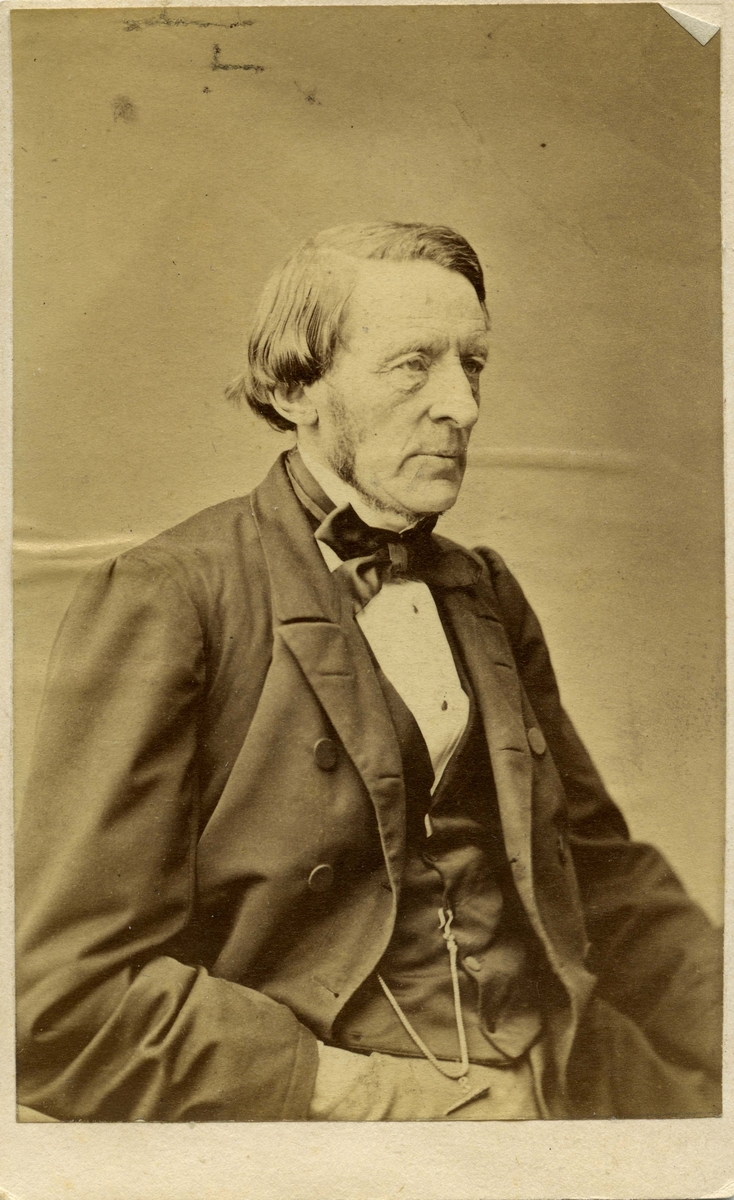 Titel: Porträtt på bokförläggare, politiker och svensk tidningsman Lars Johan Hierta. Han var född 23 januari år 1801 i Uppsala, död 20 november år 1872. Han var gift med Wilhemina Fröding.