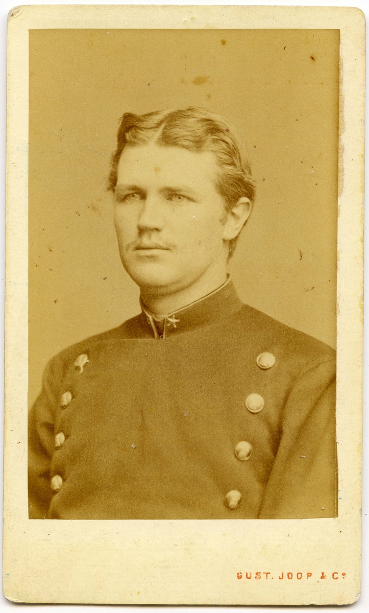 Porträtt på Löjtnant Paul Peter Per Hintze. Född år 1855, död år 1885. Blev underlöjtnant vid Jönköpings regemente år 1875.