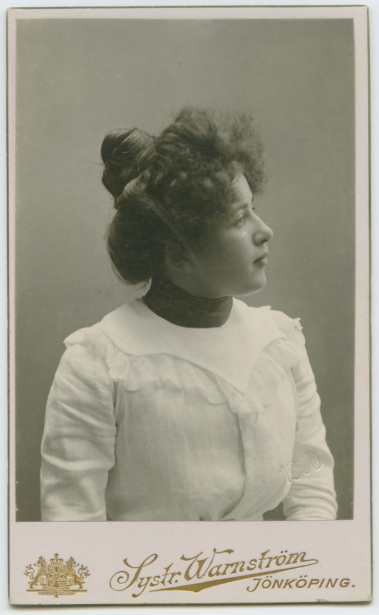 Porträtt på Fröken Anna Krantz kassörska på spritbolaget i Jönköping.