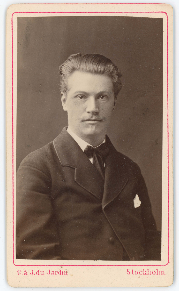 Porträtt på Oscar Lindberg, Stud. Småland. Arkitekt, överlärare vid Tekniska skolan.