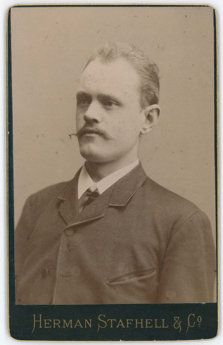 Porträtt på Carl Lindqvist. Anställd på Lundgrenska Boktryckeriet, Jönköping.