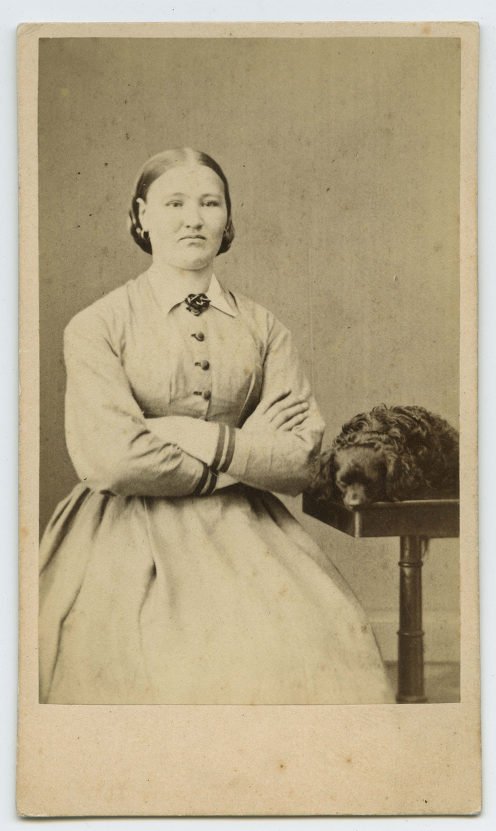 Porträtt på Tjänarinna Långa Maja, Jönköping. Emigrerade till Amerika omkring år 1870.