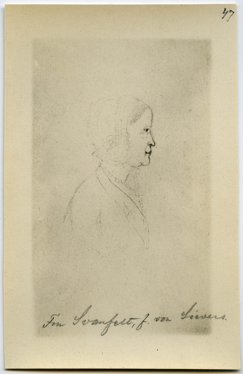 Titel: Porträtt på Fru Svanfelt född von Sievers. Handtecknat av pastor Samuel Adrian i Huskvarna omkring 1850.