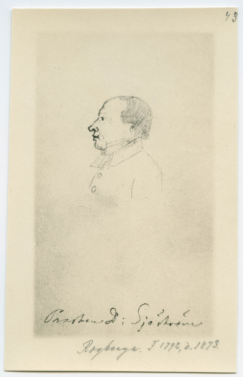Porträtt på David Israel Sjöström, (Tecknat porträtt). Född i Åsa den 5 november år 1792 och död i Rogberga den 22 december år 1873. Häradsprost i Rogberga, Jubelmagister.