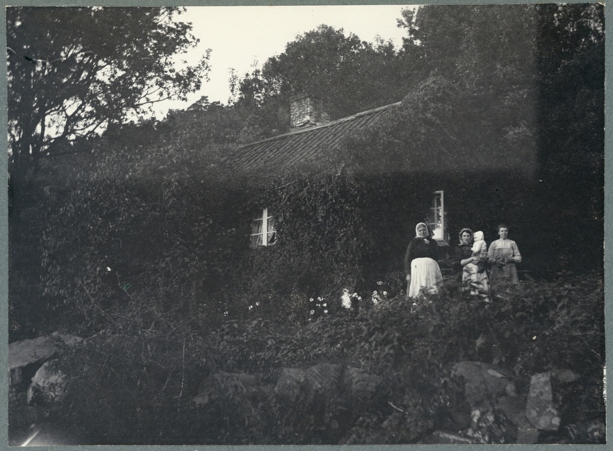 Västra Tunhem. Av murgröna omsluten stuga vid vägen mellan Tunhem och Nygård