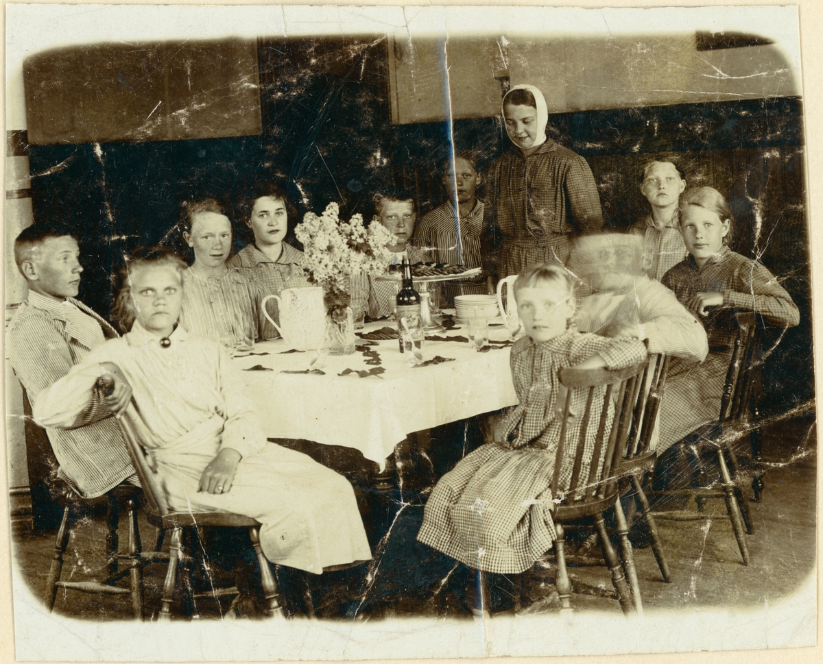 Troligen Elfsborgs läns Dövstumskola, senare Vänerskolan. Barn vid dukat bord