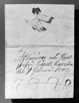 Brev, daterat Kalois i Finland den 4 februari 1808. På adressidan står skrivet: "Afkunnes uti Hausjerfvi Kapell Kyrcka den 7 februari 1808". Innehållande en Kungörelse med mobiliseringsorder til del av Kungl Tavastehus regemente.