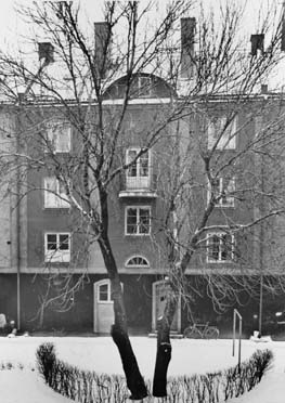 Postverkets personalbostadsfastighet, Helgalunden 1 - 9, Stockholm.Helgalunden nr 7, Gårdsfasaden.