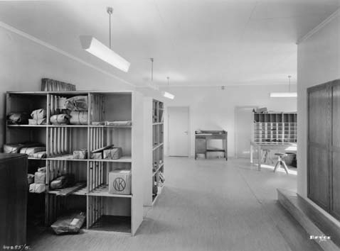 Titel: Interiör från postexpeditionens sorteringsavdelning.