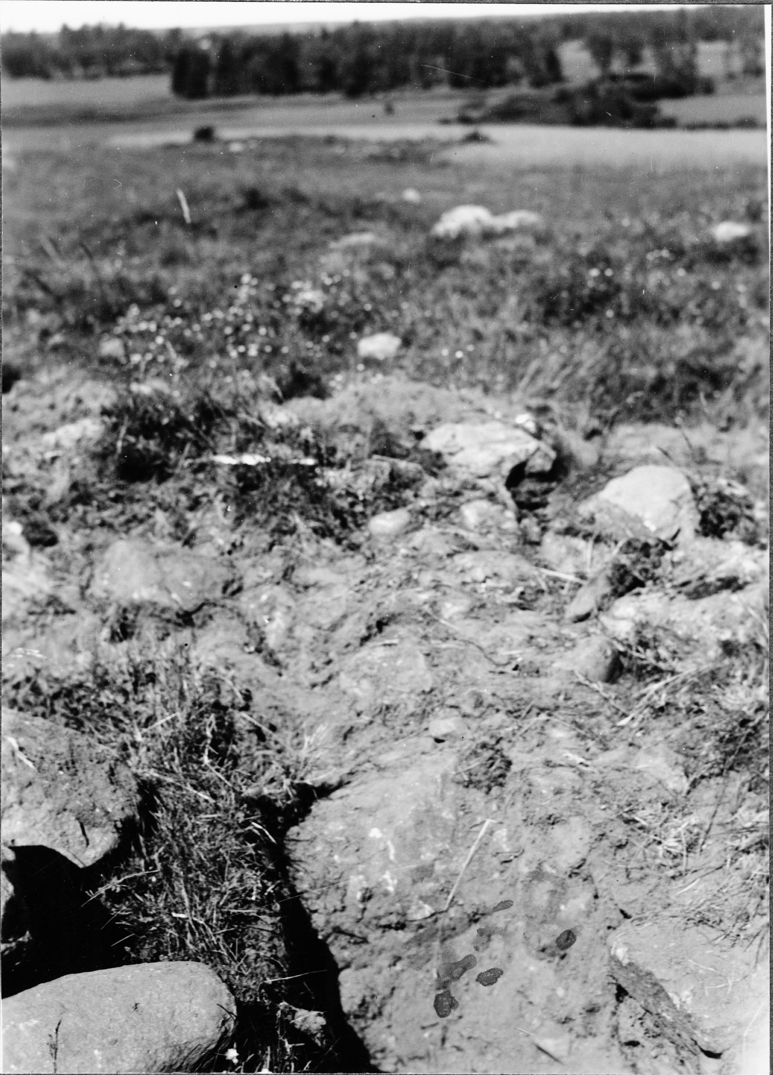 Nordvästra hörnet av muren efter det att torven avlägsnats.