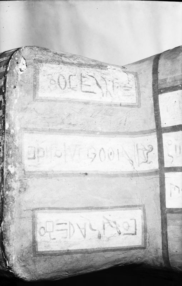 Egyptiska samlingen. Detalj av kistlock till stora mumiekistan. Vänersborgs Museum