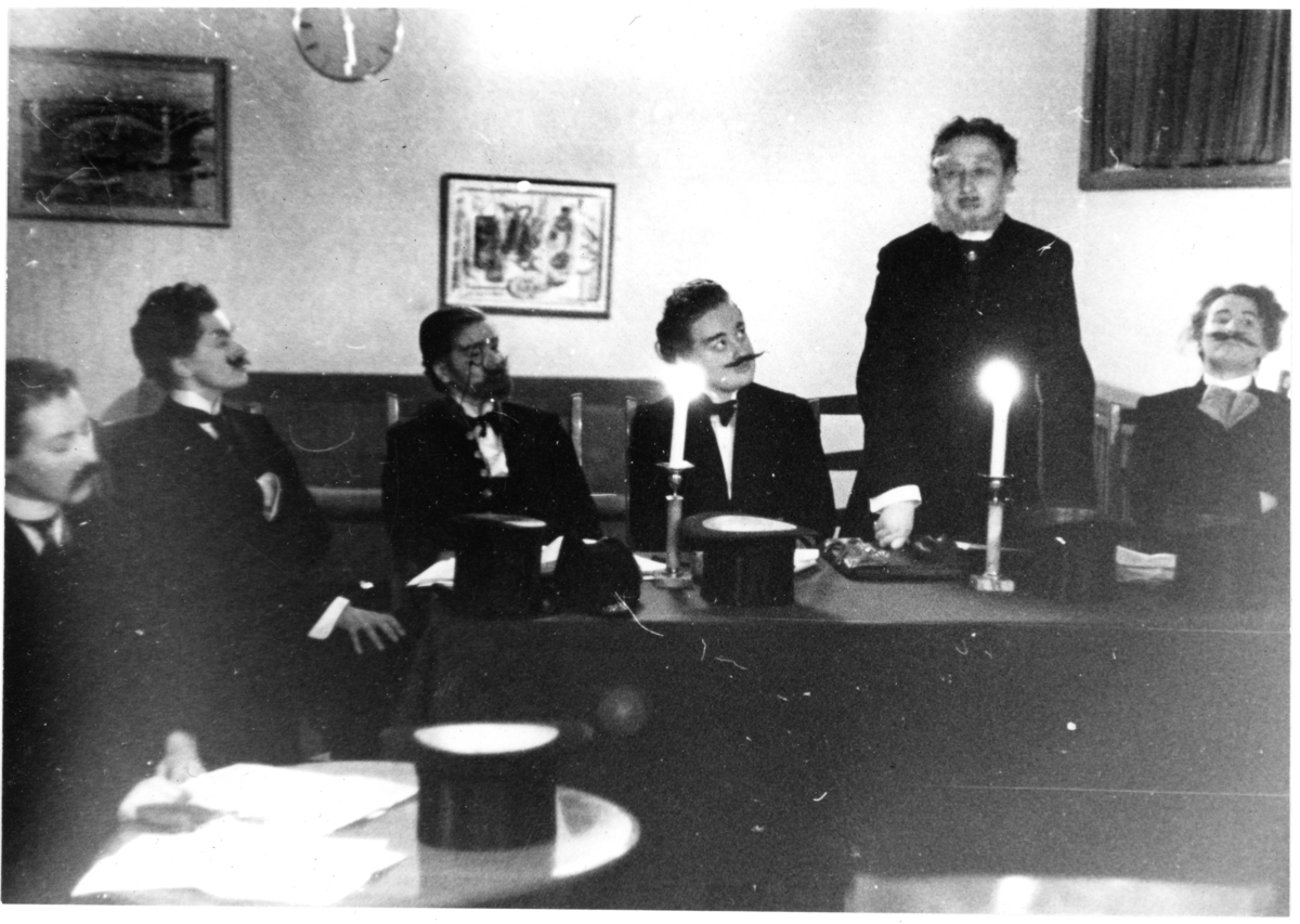 Titel: Spex framfört vid Kvinnliga Postföreningen. Generaldirektör Roos spelas av Vera Berg.