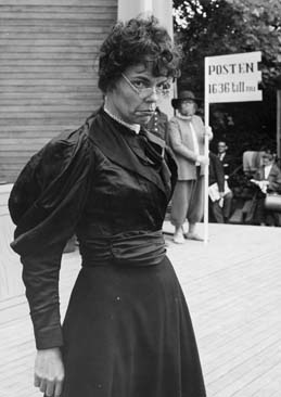 Paija Smidt, postbankens PR-sektion, framträder som grinig och gnällig "postnucka" från 1910-talet.