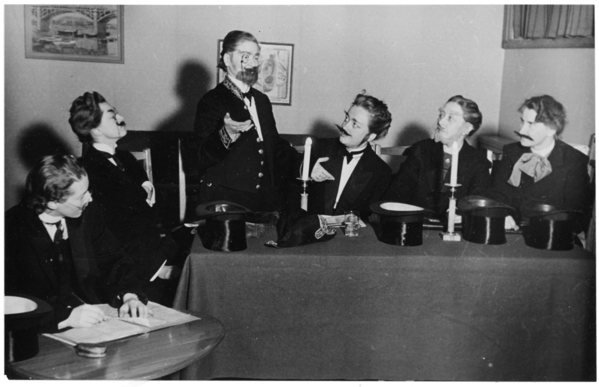 Titel: Spex framfört vid Kvinnliga Postföreningen. Generaldirektör Roos spelas av Vera Bergh.